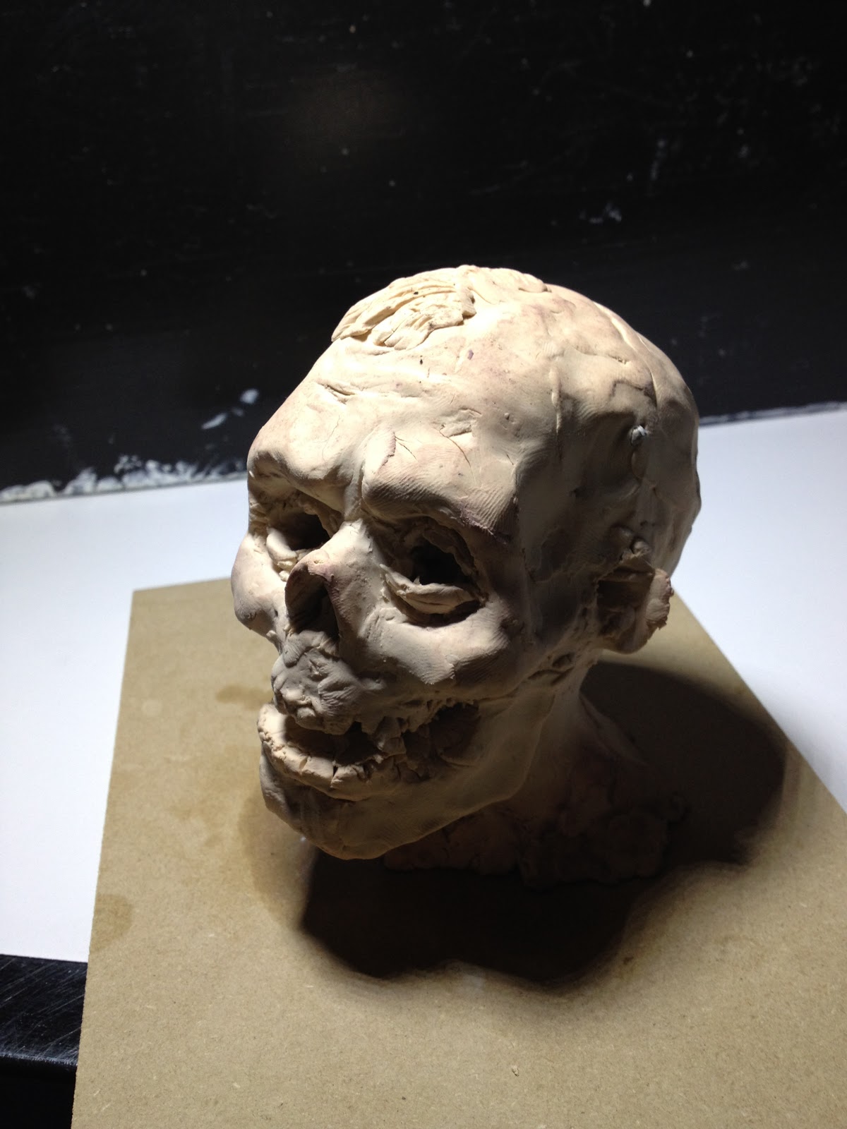 Some of you may remember my Cadavro (King of Western Terror) art from the end of last year. This is a maquette that was done for the same class. I've had it about 98% finished since the end of the class last semester, but it needed a few final touches before baking. The sculpey was pretty brittle after sitting unbaked for so long, but I was able to get a few things right. I'm pretty happy with how he turned out. I want to do some more little monster busts. He's about 5" tall.